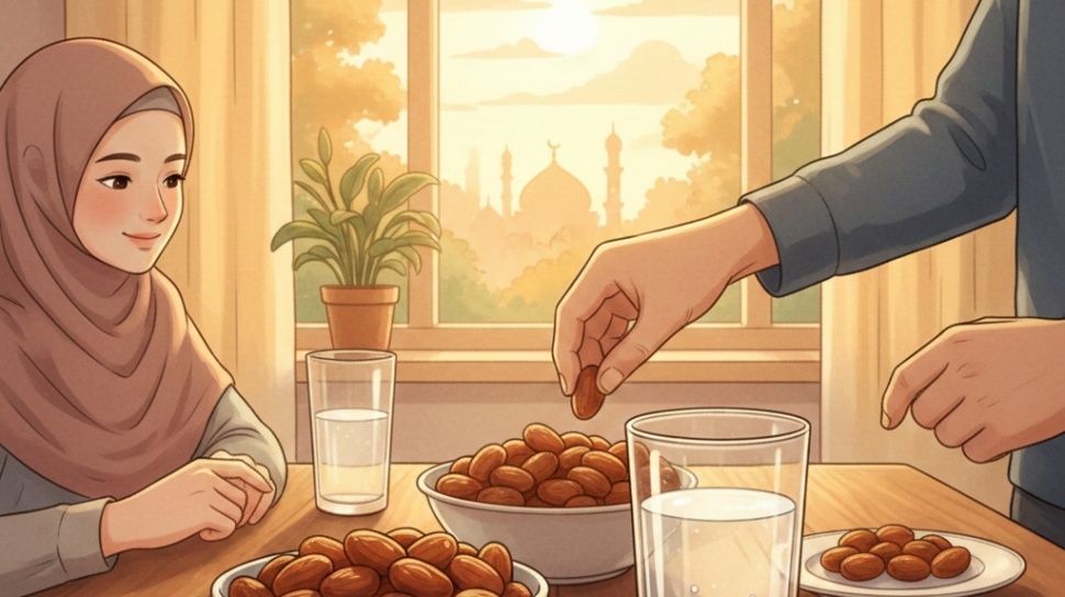 - Dokter Andi Kurniawan menyarankan berbuka dengan kurma dan air, beri jeda sebelum makan utama untuk mengoptimalkan sinyal kenyang.